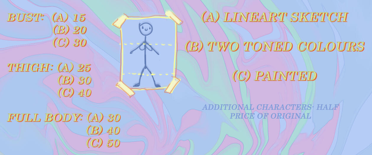 | HOW DO I KNOW IF MY COMMISSION IS ACCEPTED? | I WILL DM YOU THROUGH THEIR PREFERED CONTACTS. | |